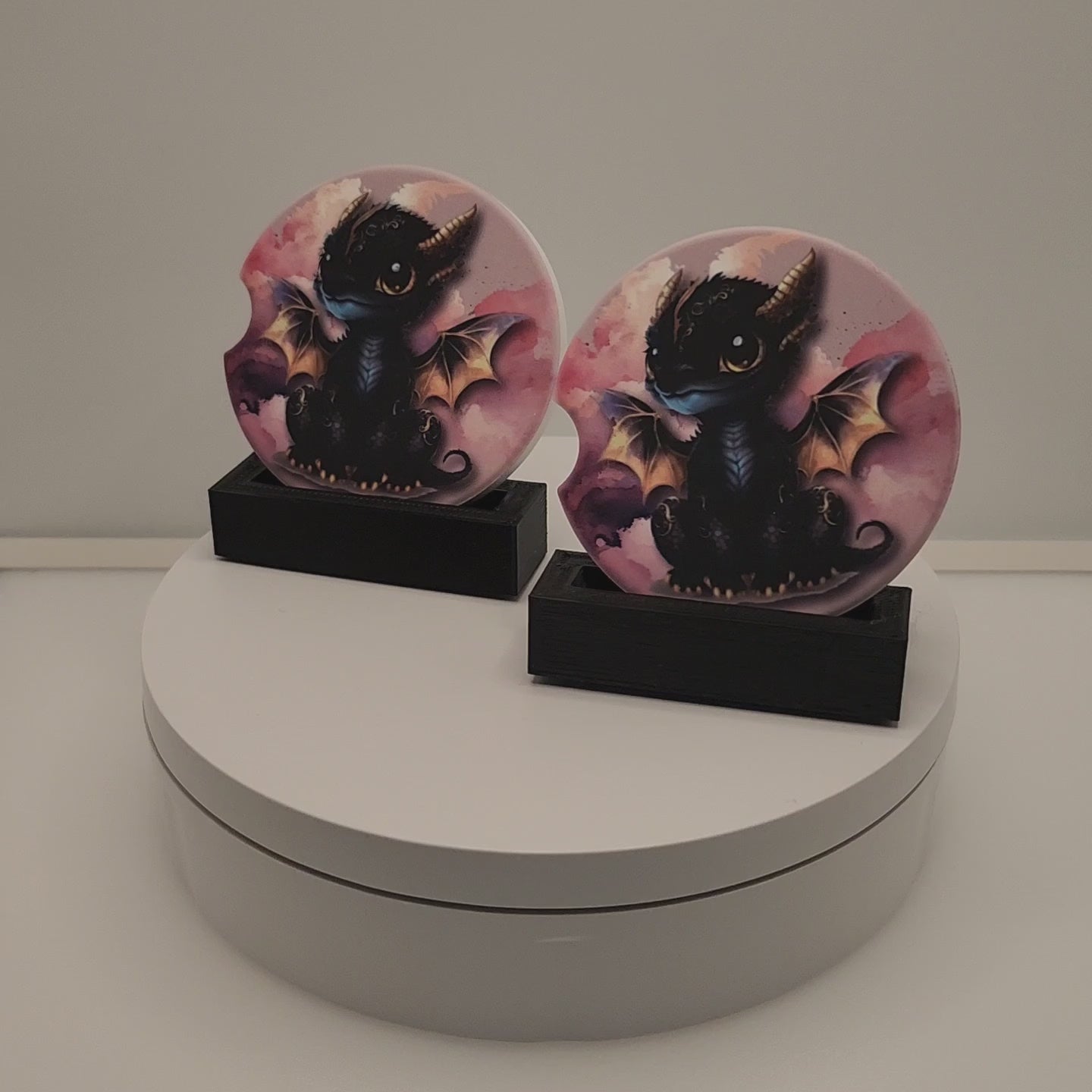 Black Baby Dragon Car Coasters | Set of Two