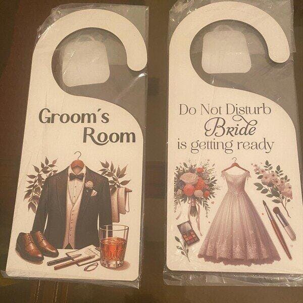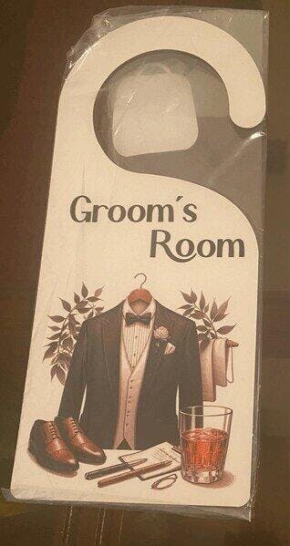 Make the Groom's Room Door Hanger an essential part of your wedding preparations. Designed to keep the groom's privacy intact, this door hanger is perfect for hanging on hotel room doors or wedding venue entrances. Crafted with care, it features a stylish design and durable material, ensuring it withstands the celebrations.